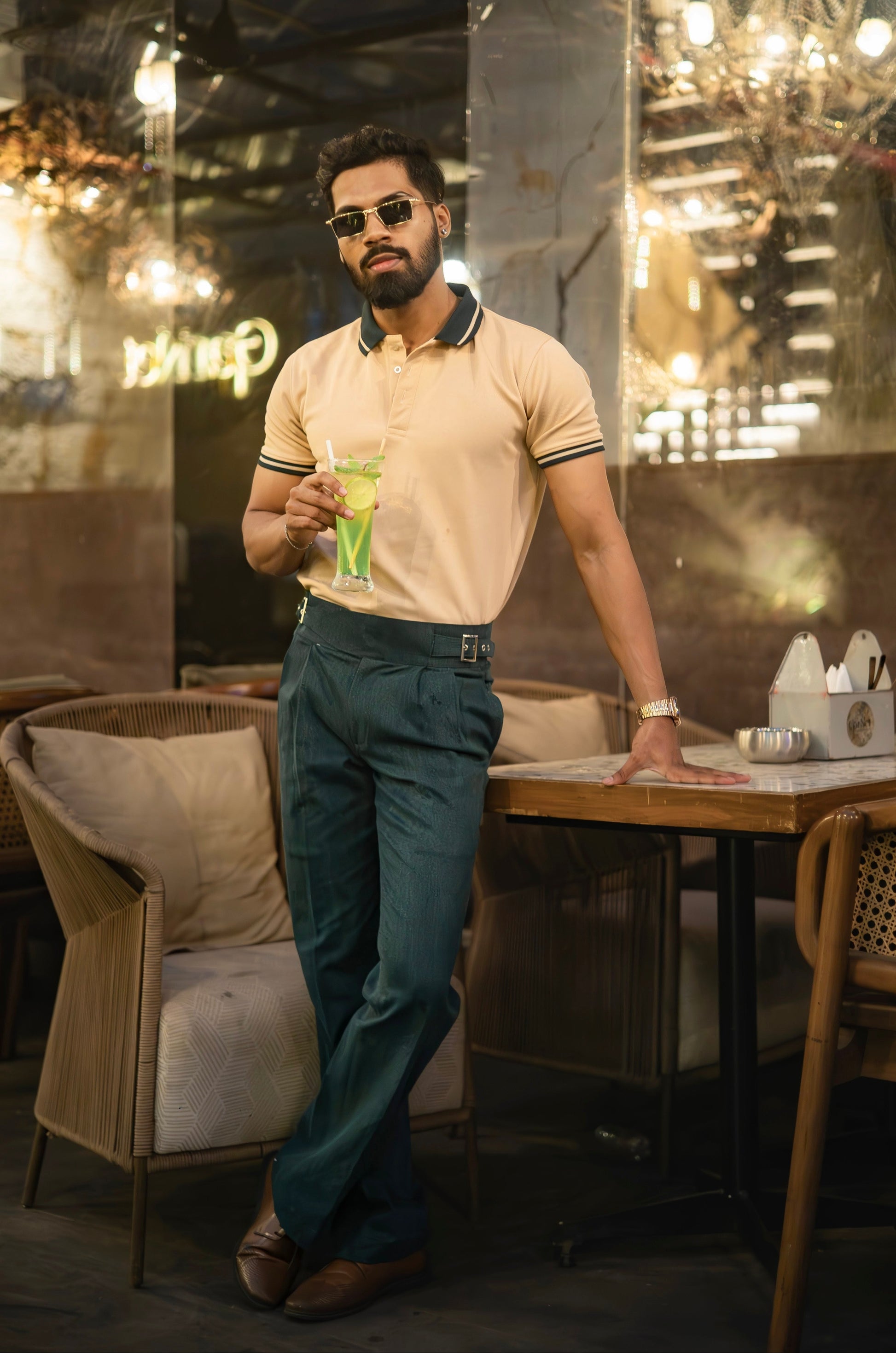 Pleated front with bootcut legs gives a trendy Gurkha look.